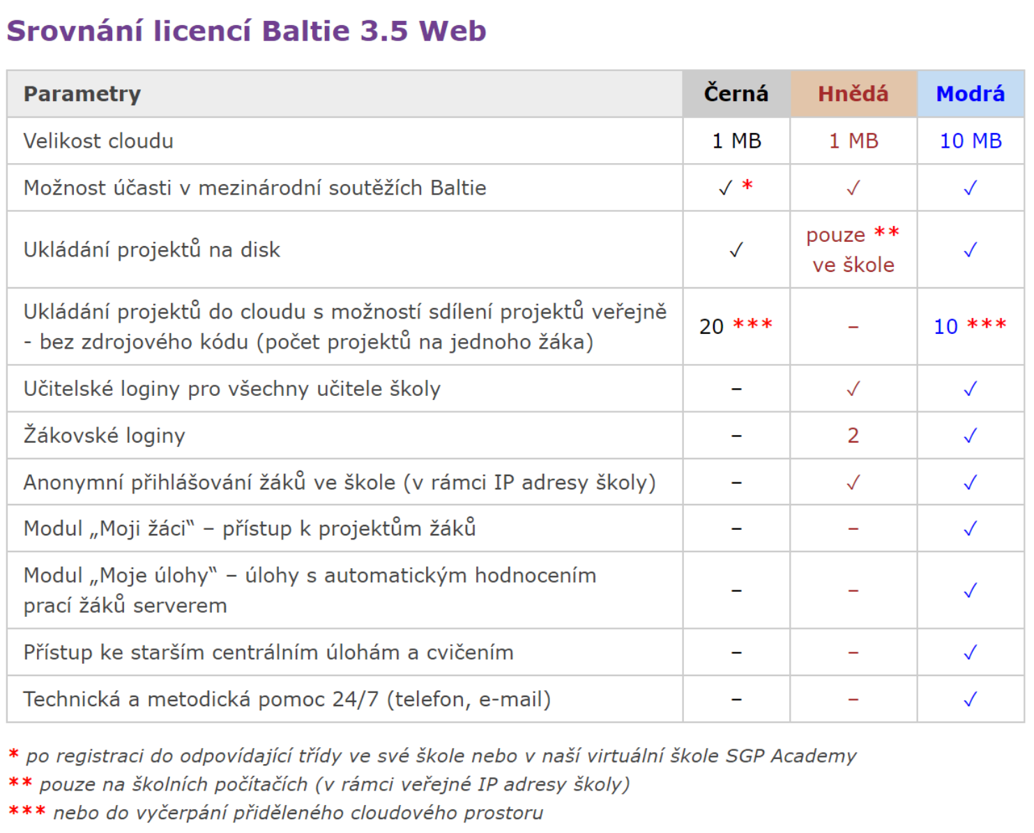 Srovnání licencí Baltie 3.5 Web